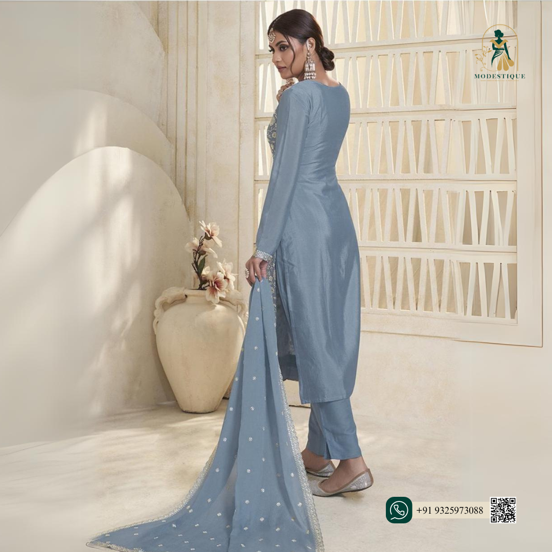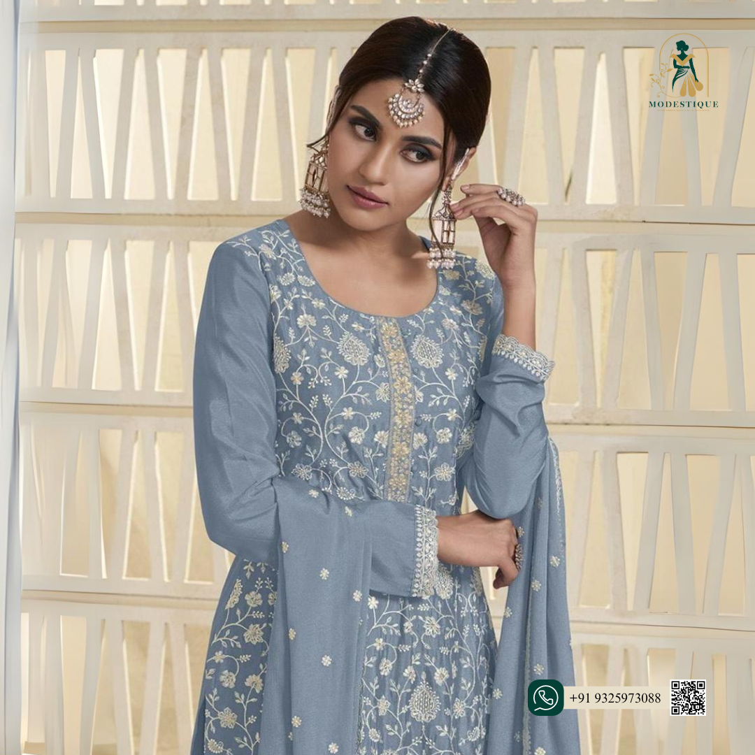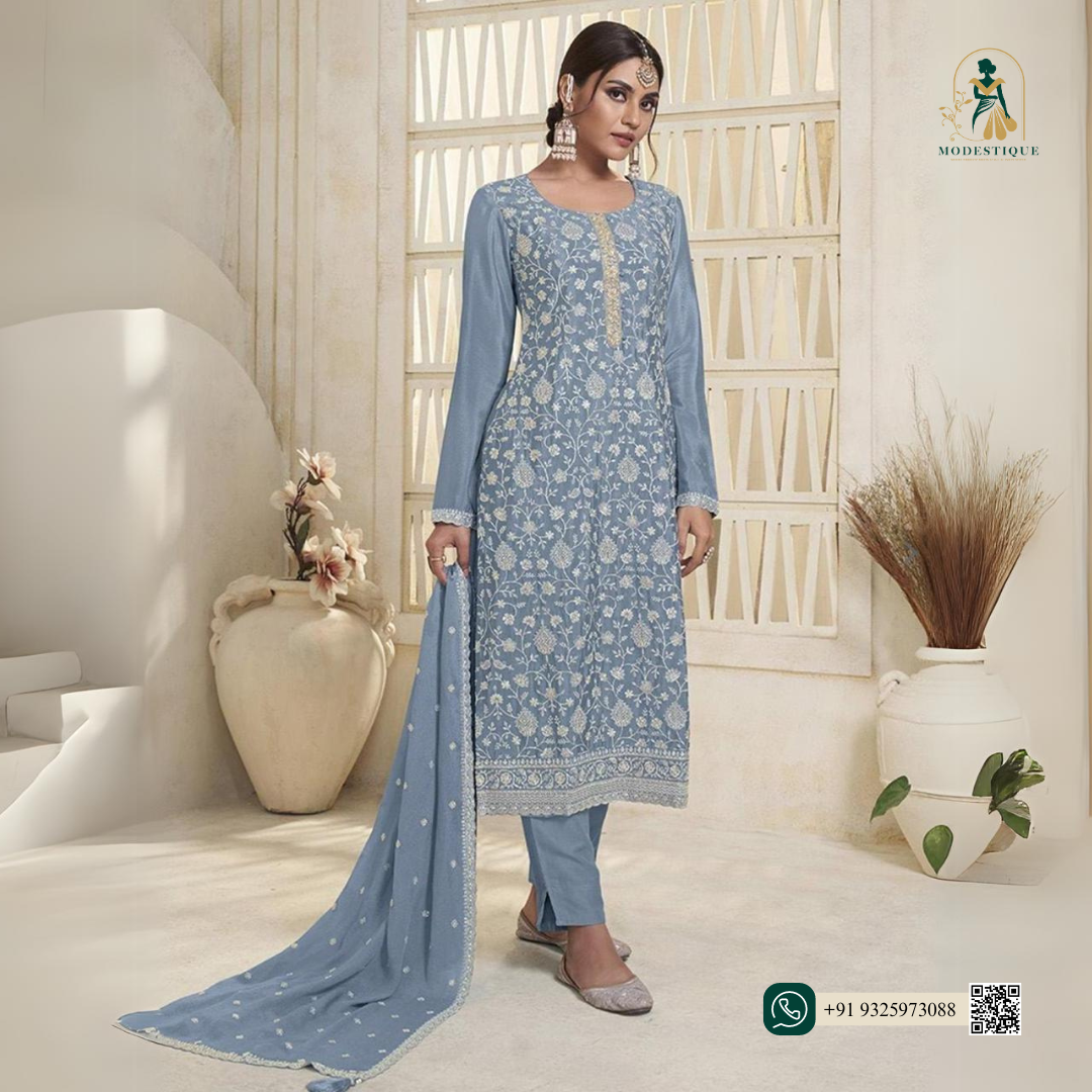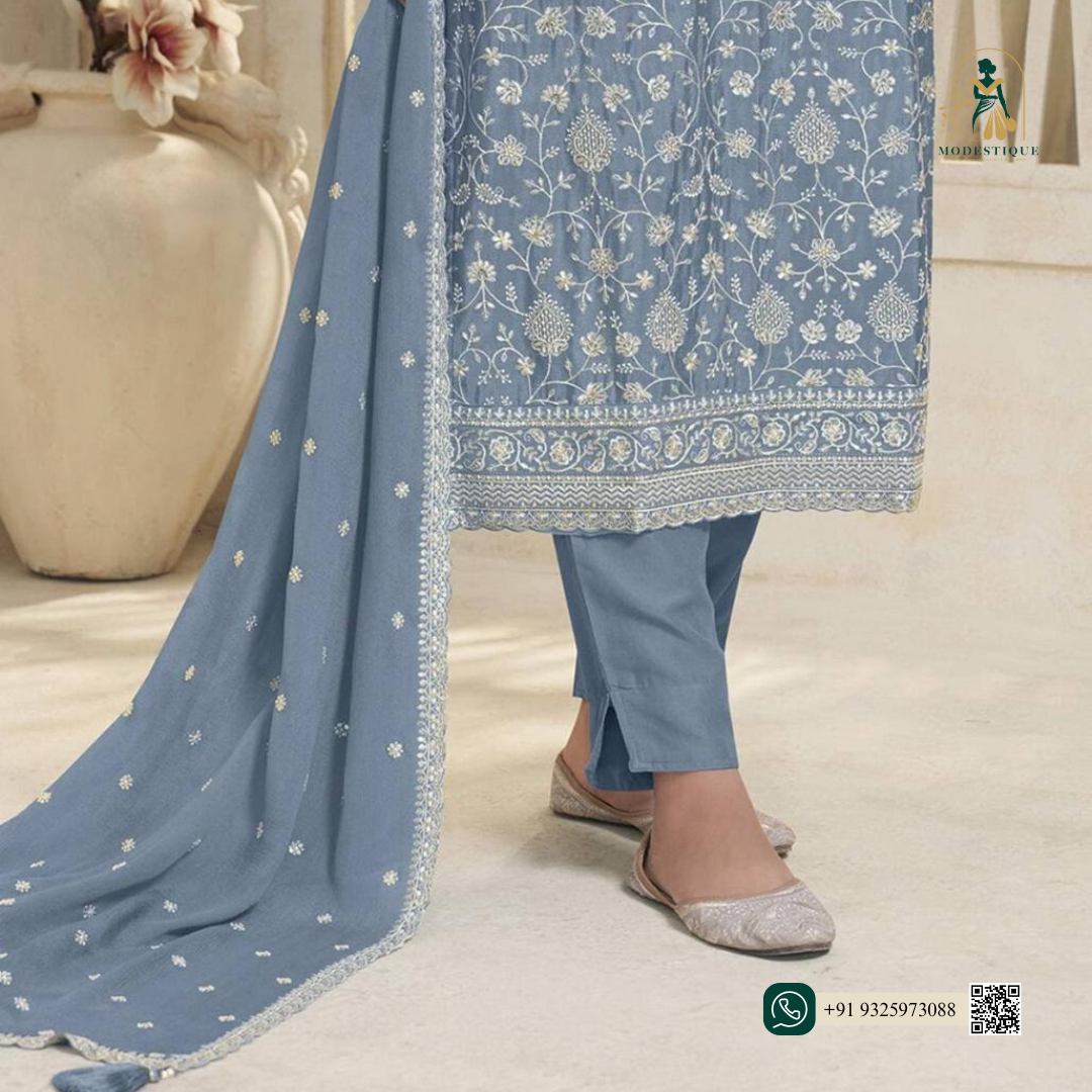Our Gorgeous Pure Organza Silk Kurtas & Dupattas Having Intricate Floral French Thread Work 🪷